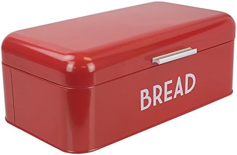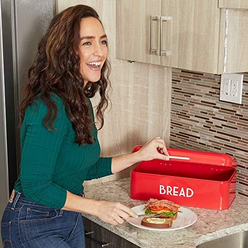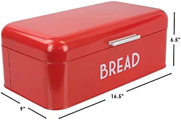 Home Basics Grove Bread Box For Kitchen Counter Dry Food Storage Container, Bread Bin, Store Bread Loaf, Dinner Rolls, Pastries, Baked Goods & More, Retro Vintage Design, Red